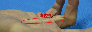 手のひらにコブや索状物が発生し指が伸びなくなる疾患です。以前は手術だけが唯一の治療法でしたが、最近は注射治療で良好な治療成績が得られております。